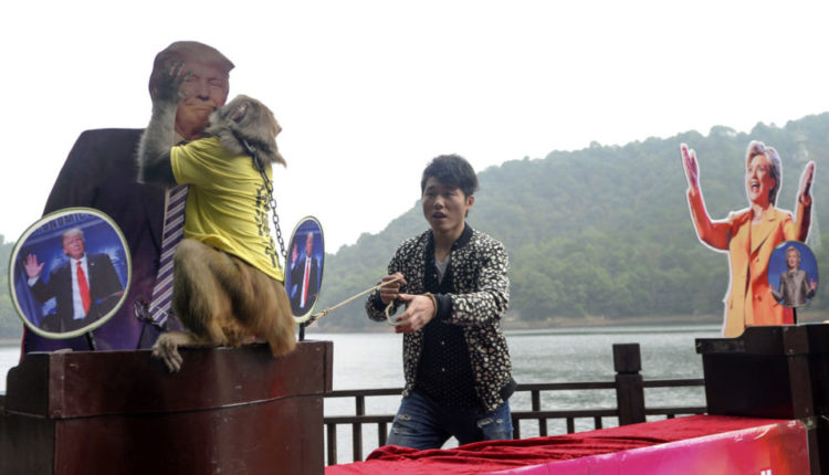 After “deliberate thought” the mystic monkey chose Trump, Shiyanhu Ecological Tourism Park said Thursday in a statement on its website. Without even waiting, he congratulated the cardboard candidate with a kiss on the lips.