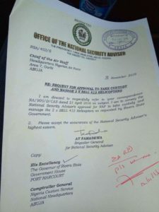 “I wrote a letter to the President and to assure him that the helicopters are meant for security purposes, it should be handed over to the Nigerian Air Force “.