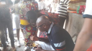 Fayose who made a surprise visit at the camp kitchen where members of Platoon 9 were preparing dinner for Corps members, availed himself of the eba meal, sat down there in the kitchen and consumed it to the admiration of the Corps members.