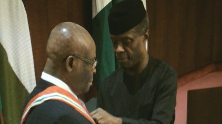The award, Nigeria’s second highest national honour, was given by Mr. Osinbajo.