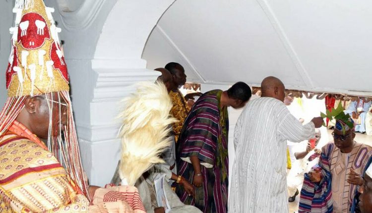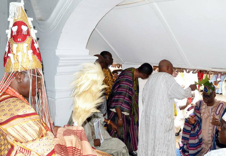 Also honoured was the wife of Gombe Governor ,Hajia Ummi Adama Dankwambo and a member of House of Representatives , representing Remo Constituency in the House of Representatives and governorship aspirant in Ogun State on the platform of the Peoples Democratic Party, Mr Ladipo Kessington Adebutu. Fayose was conferred with the Apesin Apogun Pote of Ado Ekiti, while Dankwambo was bestowed with the title of Akinmuagun.
