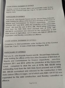 Also on the N25 billion bond, Fayemi and Kolawole were accused of stealing the sum of N716,688,790.92 out of the N750 million earmarked in the Bond Prospectus and released for the construction of Ekiti State School of Agriculture out of which only N33.311,209.08 was allegedly spent, N198,860,023.00 being outstanding fund from the N500 million earmarked in the Bond Prospectus and released for the construction of Ekiti State Liaison Office in Lagos, out of which only N301,139,977 was expended for the said construction.