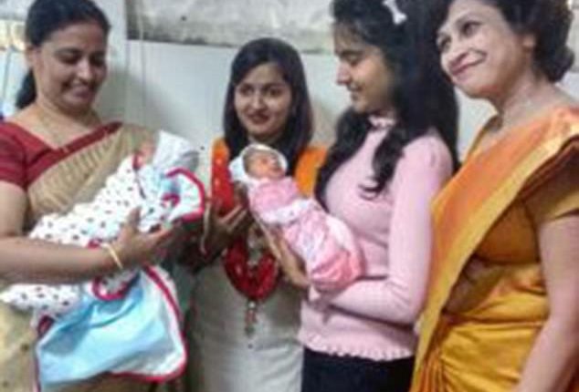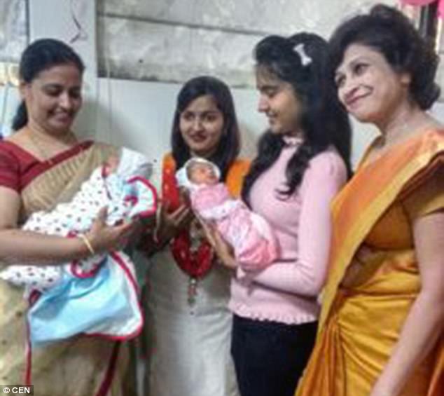 She called the boy Prathamesh, while she named the little girl after her daughter Prisha, who will help her raise the babies in the city of Pune, Maharashtra State, Western India.