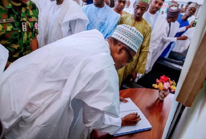 Although the President had, on Saturday, paid tribute to the late former president through a statement signed by his Special Adviser on Media and Publicity, Femi Adesina, he wrote only his name – M. Buhari – and date – 30/12/ 2018 in the condolence register, when he visited the Sama road, Sokoto residence of Shagari to condole with members of his family.