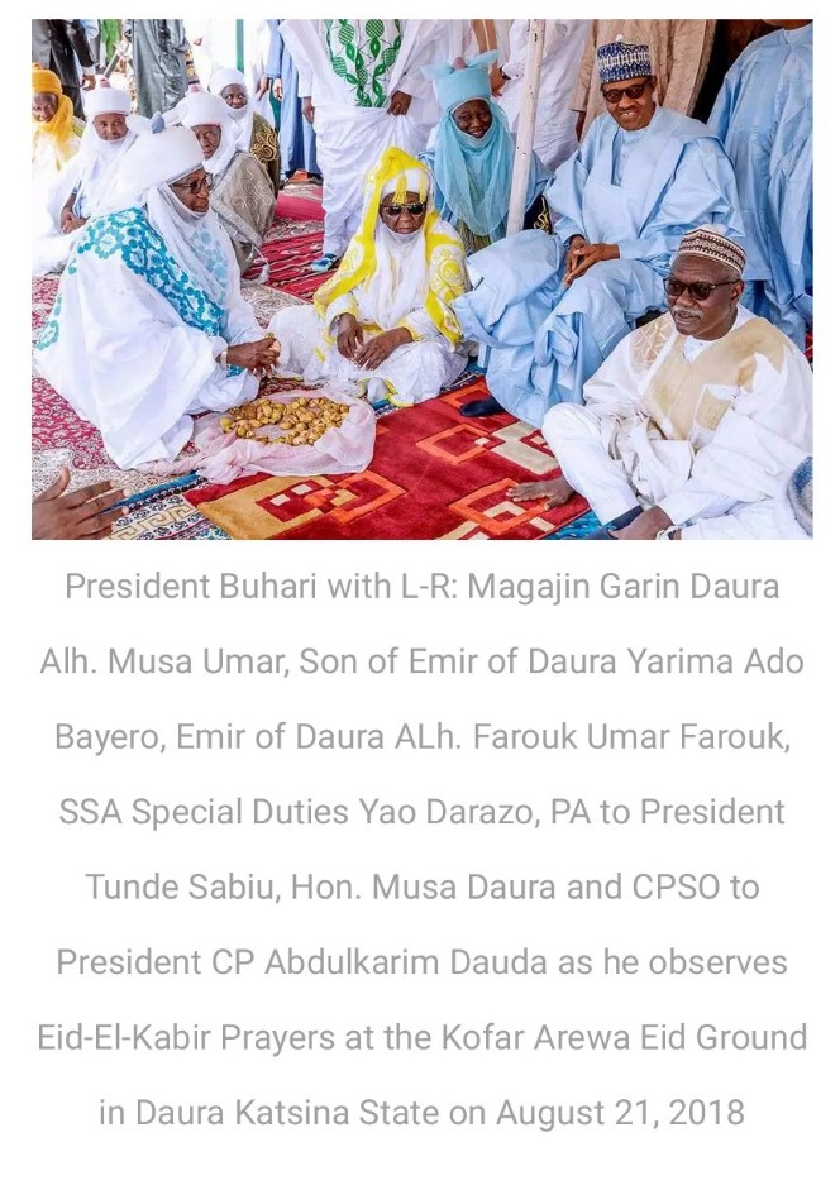 The traditional ruler is the father of Fatima Musa, wife of Colonel Mohammed Abubakar, the Aide de Camp, ADC, to President Muhammadu Buhari.