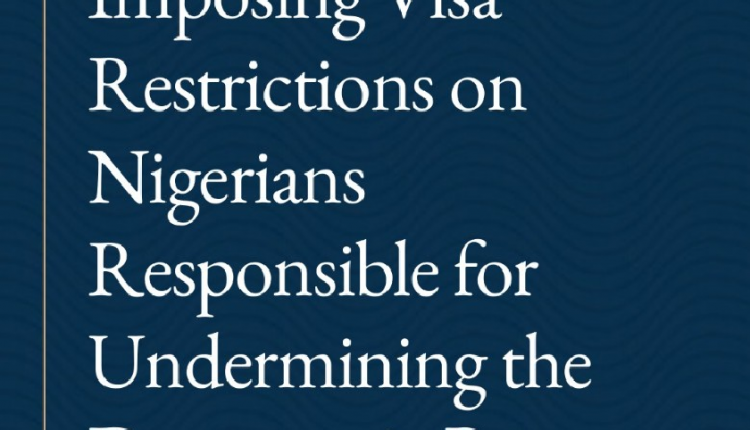The U.S. State Department said on Tuesday it had imposed visa restrictions on Nigerians it said were involved in trying to undermine democracy in presidential and parliamentary elections this year.