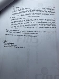 The chief executive of Federal Inland Revenue Service, FIRS, Tunde Fowler, has replied the query issued him by the presidency.