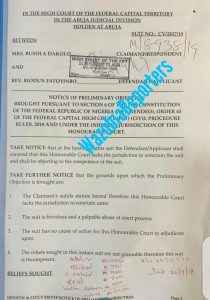 Biodun Fatoyinbo, Senior Pastor of the Commonwealth of Zion Assembly (COZA) has urged the Federal Capital Territory (FCT) High Court to dismiss the suit filed by Photographer, Mrs Busola Dakola.