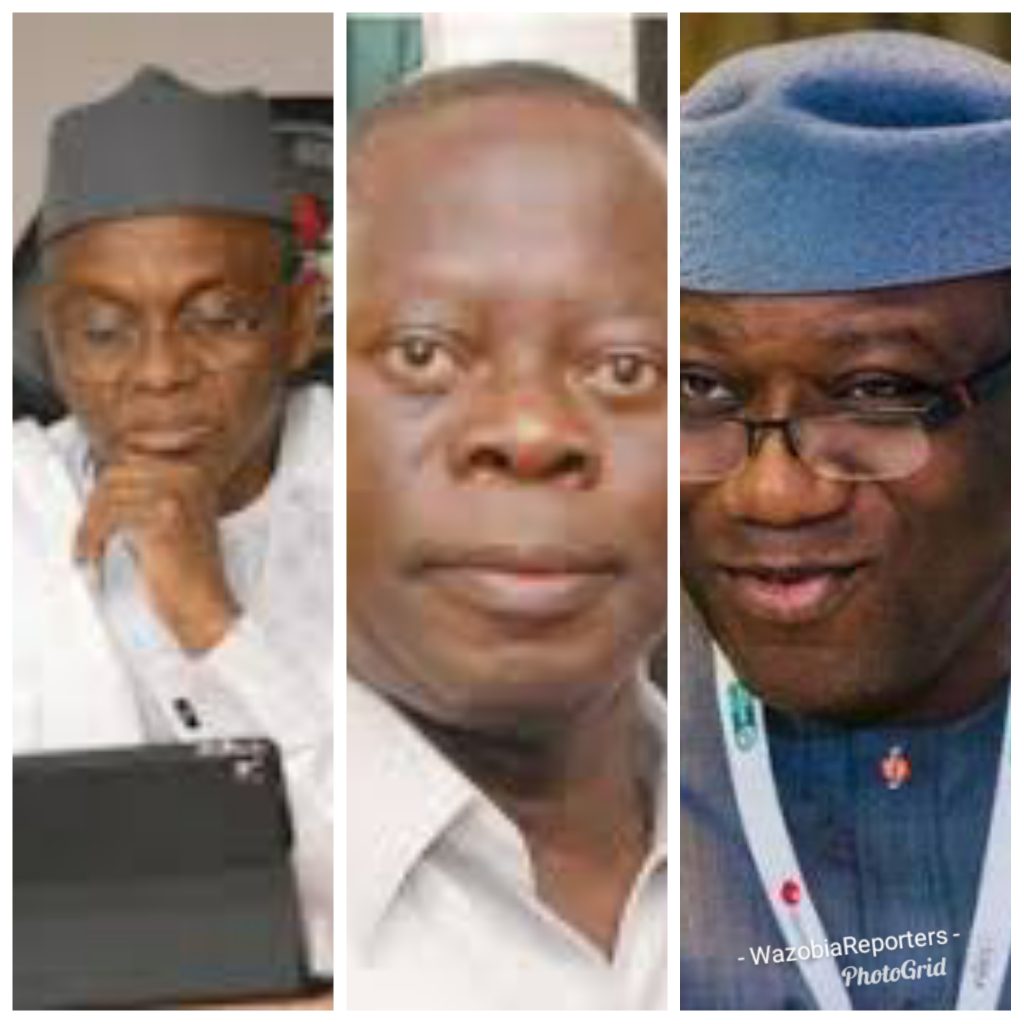 Sources confided in WazobiaReporters that State Chairmen of the APC in Ekiti, Kaduna and Kano States, who were at the forefront of the “Oshiomhole must go” agitation yesterday, acted as directed by Governors Fayemi, El-rufai and Ganduje.