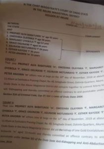Prophet Babatunde was arraigned alongside six other defendants, Omodara Olayinka Margaret Oyebola ,Grace Ogunjobi, Egunjobi Motunrayo ,Esther Kayode and Peter Anjorin.