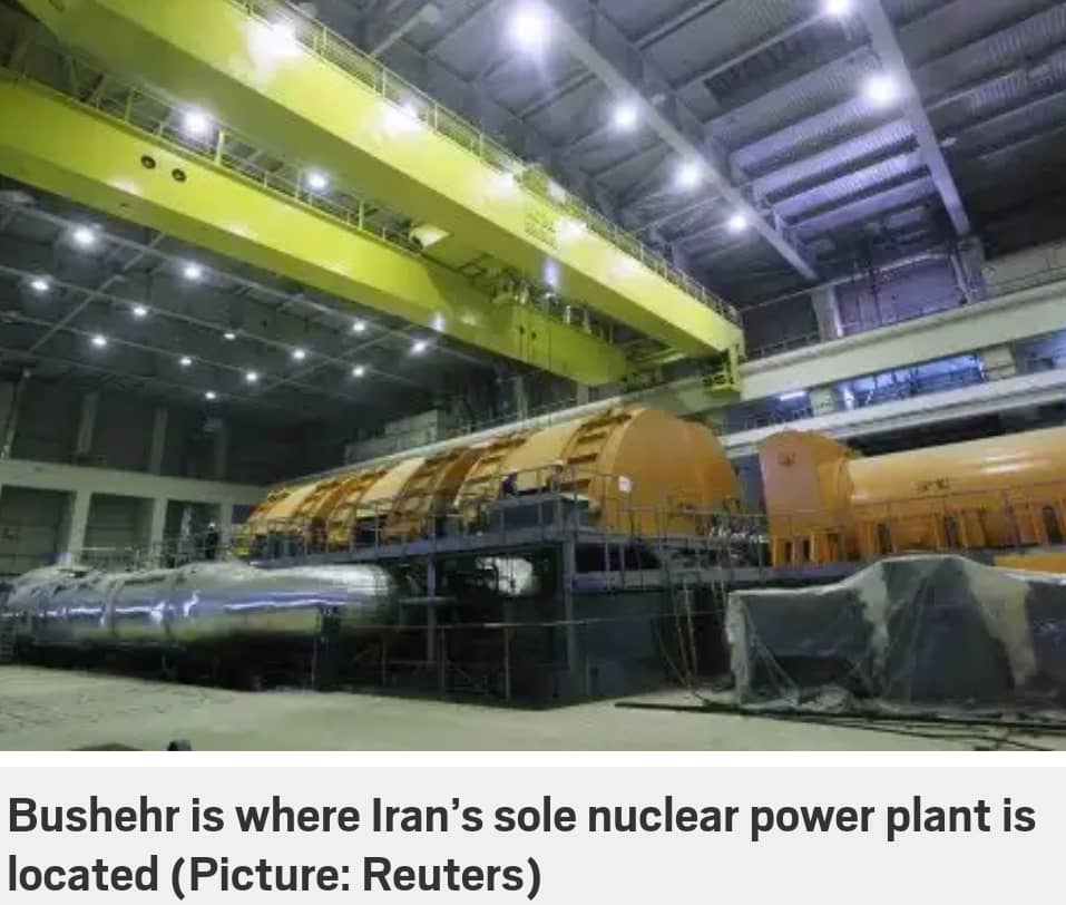 Bushehr is where Iran’s sole nuclear power plant is located.