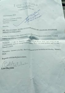 In a short message sent to Wazobia Reporters by the Ekiti State coordinator of the PDP National New Media Group, Bola Agboola, Lere Olayinka was arrested and detained when he was making himself available on the invitation gotten from the police command on an alleged financial impropriety.
