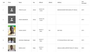 The National Agency for the Prohibition of Trafficking in Persons has published the names and photos of convicted sex offenders, including rapists.