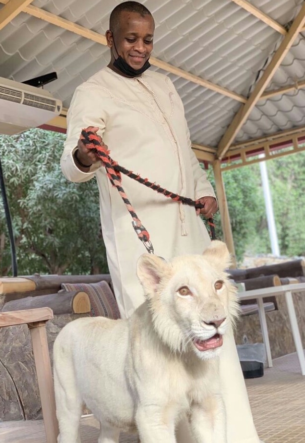 Indimi, who is married to Zahra, took to Instagram to share photos of himself with a white lion.