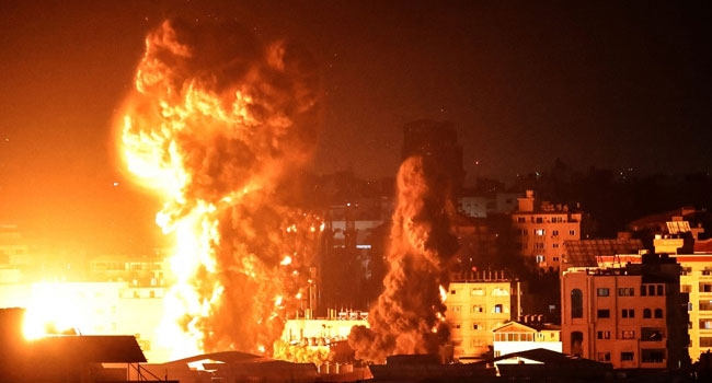 Flames lit up the sky as intense explosions shook Gaza city, sparking widespread power cuts and damaging hundreds of buildings, local authorities said. No casualties were immediately reported.