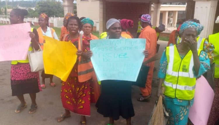 Street sweepers on the payroll of the Ekiti State Government, on Monday, protested their N5,000 monthly remuneration.