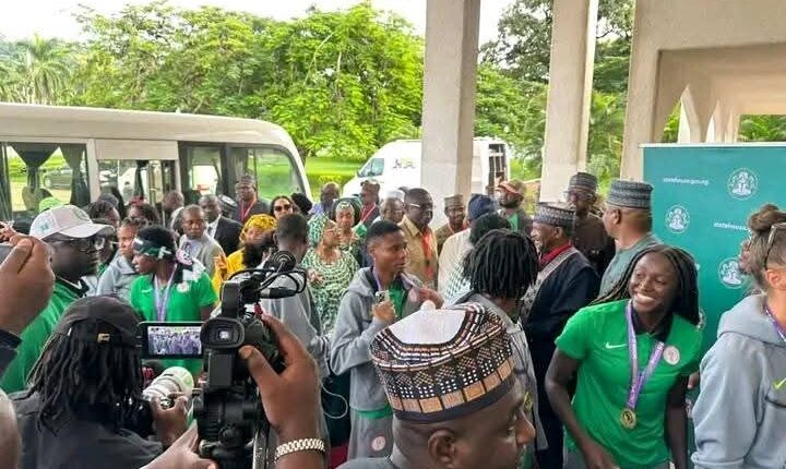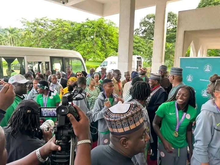 The newly crowned continental champions, captained by Rasheedat Ajibade, presented the glittering trophy to President Bola Tinubu amid cheers from the first lady, Senator Oluremi Tinubu, government officials, and football administrators.