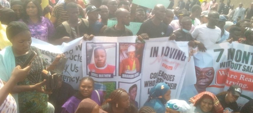 Hundreds of civil service workers in Taraba State staged a protest on Monday over unpaid salaries spanning seven months.